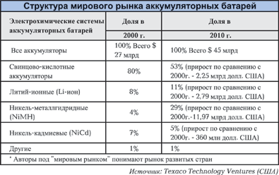 Сейчас эксперты оценивают долю новых автомобильных аккумуляторов на рынке к 2005 году цифрой только менее 1%. Во всем мире (особо – Китае) непрерывно на 2-3% в год растет производство свинцовых аккумуляторов.