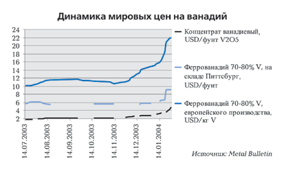 Резкий рост цен на ванадий в начале 2004 года (феррованадий) вызвал несколько обращений читателей в редакцию журнала и на сайт MetalTorg.Ru с просьбами сообщить и прокомментировать новые цены.