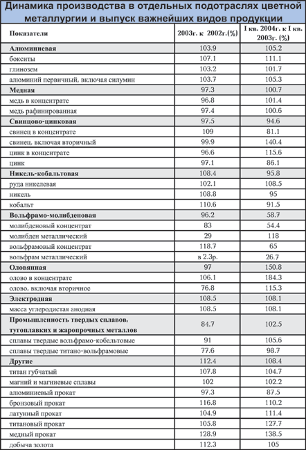 Цветная металлургия в начале 2004 года