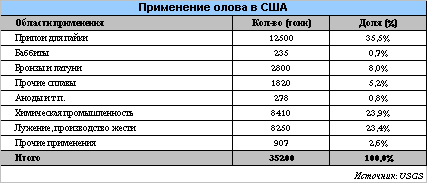В отличие от большинства других металлов структура применения олова в мире за последние десятилетия меняется просто революционно. Достоверной общемировой статистики применения олова нет. В большинстве обзоров по олову традиционно пишется, что большая его часть расходуется на лужение жести, аналогичная доля – на производство огромной гаммы сплавов. Прежде всего – бронз, подшипниковых сплавов (баббитов), типографских сплавов (гарт).