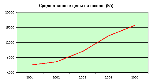 * И наконец, только 29 апреля 2005 года эксперты Barclays Capital повысили прогноз цен никеля на 22% - до 15800 $/т.