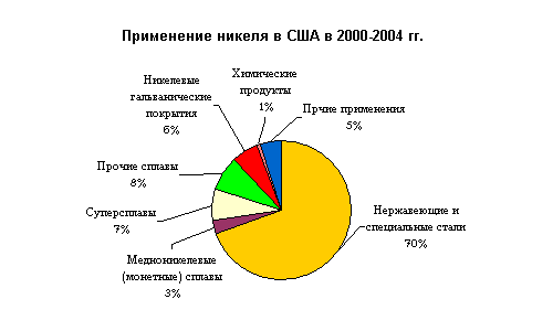 Основными потребителями никеля в мире были и остаются металлурги различных отраслей. В высокотехнологичной промышленности США в последние годы черная и цветная металлургия стабильно потребляют более 95% производства и импорта никеля, включая вторичный металл.