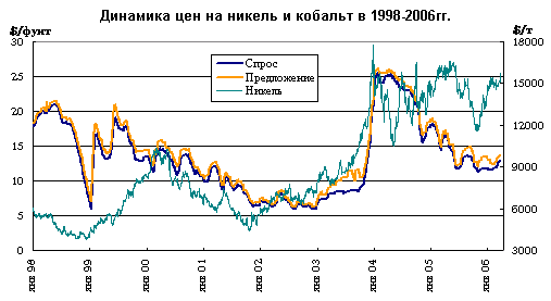 В целом в 2003-2004 годах кобальт проявил заметно большую «солидарность» с ценами на никель, чем с рыночным предложением кобальта, включая распродажи резервов.
