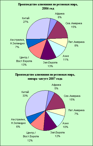 Теперь же темпы развития китайской промышленности намного превышают успехи любой другой страны. По данным Национального бюро статистики КНР и IAI, в 2006 г. рост выпуска алюминия составил 19,7%, в первом полугодии 2007 г. – 36,6%.