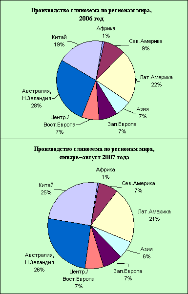 Если еще несколько лет назад большинство алюминиевых заводов работало на импортном глиноземе, то к середине 2007 г. доля отечественного сырья достигла 80%. По прогнозам Chalco, с 2007 г. страна импортирует не более 5 млн т глинозема из более чем 20 млн т, необходимых потребителям. Вес Китя на мировом глиноземном рынке значительно возрос даже по сравнению с прошлым годом (рис. 2).