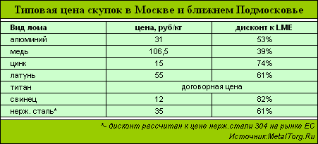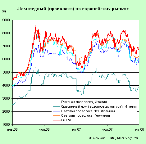 Европейские цены, как на медный, так и на латунный лом, всегда следовали и будут следовать практически вплотную к котировкам рафинированного металла на рынке. Степень извлечения чистого металла (особенно из лома кабельной продукции) очень высока. С медными водопроводными трубами и арматурой ситуация гораздо хуже, что и отражается на ценах, которые составляют 60–70% от цены кабельно-проводникового лома.