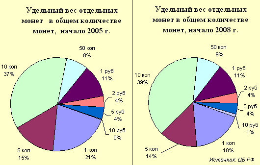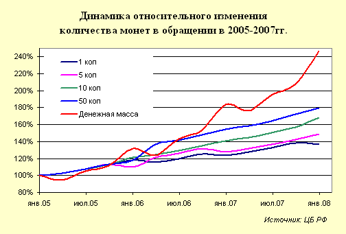 Нельзя сказать, чтобы Центробанк не предпринимал совсем ничего: с середины 2006 г. технология производства ряда монет – номиналом в 10 и 50 копеек – была изменена.