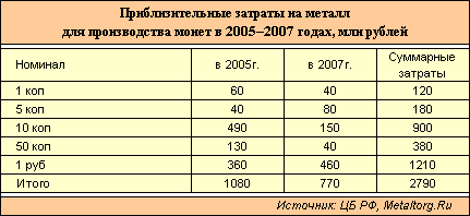 Более двух лет назад в статье «Тайны монетного двора» мы поставили под сомнение целесообразность производства мелкой монеты в России. По оценкам MetalTorg.ru, убытки от ее эмиссии превышали тогда $50 млн в месяц.
