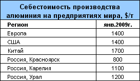 Однако даже внутри России себестоимость производства – величина не постоянная. Для сибирских заводов, получающих дешевую электроэнергию ГЭС, она почти вполовину ниже, чем для предприятий, находящихся в промышленно-развитых регионах – на Урале и в Европейской части России. Это вполне подтверждает статистика января. Так, по оперативным данным Минпромэнерго производство на Надвоицком алюминиевом заводе упало на 26,8%, на Кандалакшском – на 21,6%, на Волгоградском – на 10,5%, на Богословском – на 22,8%, на Красноярском – на 4,1%, на