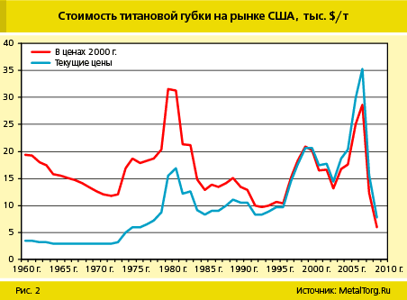 В 2005–2008 гг. производители ферротитана в США говорили о том, что вынуждены буквально обшаривать рынок в поисках достаточных для производства объемов титанового лома, но раз за разом находят его все меньше. Провал начала 2000-х гг. далее, в период роста, оставил мировой рынок титана без запасов сырья.