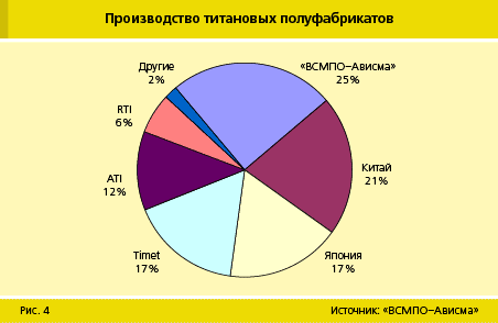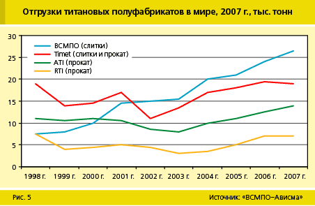 Титановый комплекс России, объединенный в корпорацию «ВСМПО-Ависма», начал завоевывать свою долю на мировом рынке еще с 1990-х гг. В сложившихся условиях положение производителей титановой продукции было тем лучше, чем более высокой степенью вертикальной интеграции обладала компания, так как это позволяло существенно снижать издержки и, следовательно, удерживать более низкие отпускные цены.