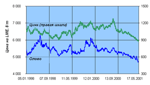 Так, например, на цинк и олово цены опустились на самую низкую за последние 3 года отметку (график 1).