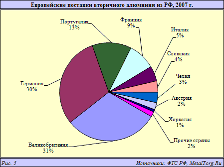 Если 5 лет назад отечественная продукция попадала на все основные европейские рынки вторичного алюминия практически пропорционально их масштабу, то в этом году о более-менее крупных поставках можно говорить только в отношении Туманного Альбиона.