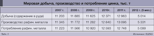 Данные по мировому балансу спроса и потребления цинка приведены в табл. 1, однако доля России на... ... ...