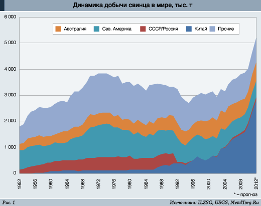 Лучше всего общемировую динамику характеризуют объемы добычи свинца – стремительный рост мирового автопарка и общий подъем промышленности заставили удвоить пока... ... ...