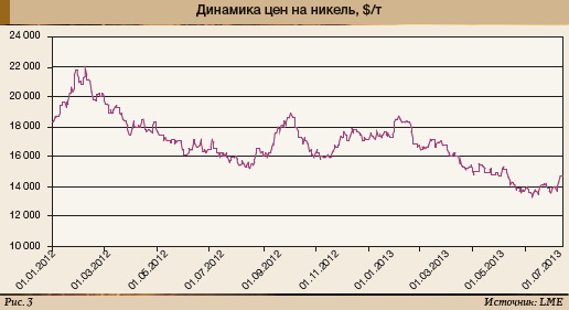 Основные его потребители – заводы по производству нержавеющей стали – сейчас сами сидят на мели, поскольку экономический спад очень сильно затронул перерабатывающую промышленность, на которую они были ориентированы. В результате основное внимание сейчас сосредоточено на ситуации с поставками никеля, дефицит которых мог бы поддержать цены (рис.3).