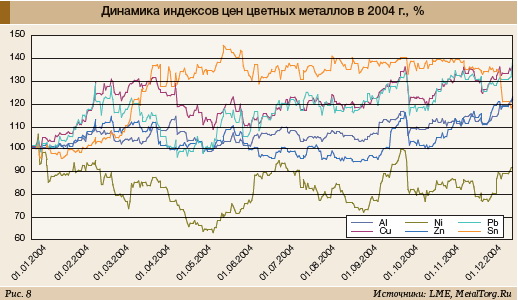 Причем сравнительно недавно - меньше 10 лет назад - об особой синхронности цен цветмета говорить не приходилось: общий спад или рост на цены, конечно, влияли, но локально динамика определялась состоянием спроса в той или иной отрасли (рис. 8). Где же источники таких огромных различий?