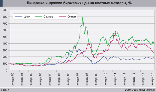 Во второй части обзора мы затронем тройку менее популярных у спекулянтов, но от этого не менее нужных металлургам цветных металлов – олово, свинец и цинк. Тем более что по истечении первых 15 лет нового века они демонстрируют принципиально разную динамику (рис. 1).