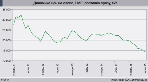 Не помогло даже непрерывно дорожавшее в 2009–2010 годах олово, в 2011-м вышедшее на исторический максимум (рис. 3).