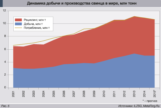У рынка свинца есть одно принципиальное отличие от всех других, рассмотренных ранее. До половины рафинированного металла не добывается, а переплавляется из различных отходов – как правило, из автомобильных аккумуляторов (рис. 5).