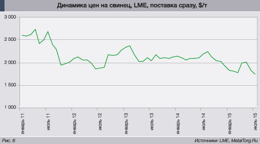 Рынок свинца с 2008 года пребывает в состоянии легкого избытка производимого металла. Но пока китайская экономика не начала испытывать явные трудности, цены держались примерно на одном уровне.