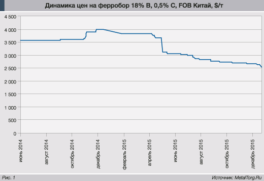 С 1 января 2015 года Китай отменил возмещение налога на экспорт металлопродукции с добавлением бора, и цены на ферробор вскоре пошли вниз. А общее падение цен на стальной прокат только усилило эту тенденцию.