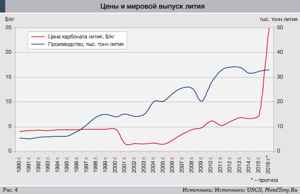 С другой стороны, за последние полгода карбонат лития (основная товарная форма лития) подорожал в разы и сейчас достиг $20 за кг для 99% продукции и $25 за кг – для товара «аккумуляторного» качества (99,5%; рис. 4).