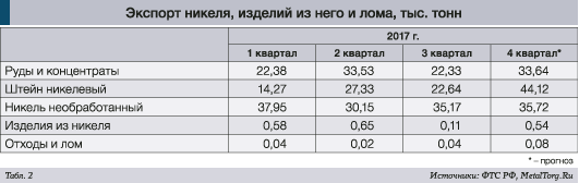 А вот поставки рафинированного никеля из России менялись практически синхронно с колебаниями биржевых цен (табл. 2).
