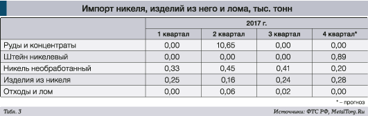 Такой способ подсчёта достаточно справедлив, ведь обратного потока в Россию переработанного в Финляндии сырья в каком-либо виде не наблюдается. Строго говоря, стабильного импорта никеля или продукции из него в нашу страну практически нет (табл. 3).