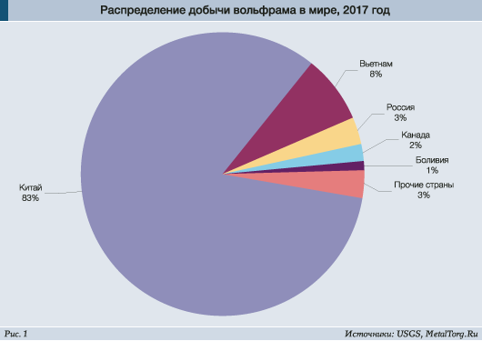 Спасло ситуацию только китайское правительство, как раз озаботившееся экологичностью металлургических предприятий. Были приостановлены или закрыты некоторые производства, наложены ограничения на взрывные работы, начаты закупки вольфрама в госрезерв. Это заметно повлияло на баланс его спроса и предложения. Собственно, от кого же ещё может зависеть мировой рынок (рис. 1)?
