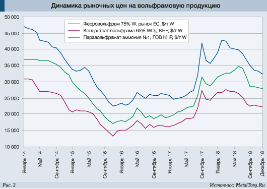 Рост цен продолжался по мере исчерпания запасов вольфрамового сырья у потребителей и прекратился только в феврале 2018 года.