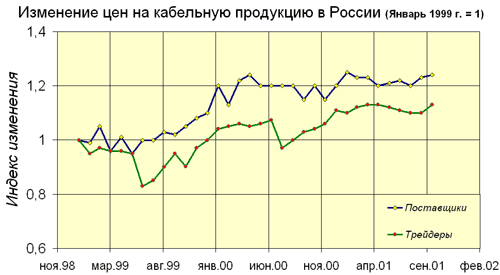 Вообще рынок проводов в России достаточно динамично растущий сектор. Динамика изменения цен на провода в России за последние 2 года представлена на графике 3.