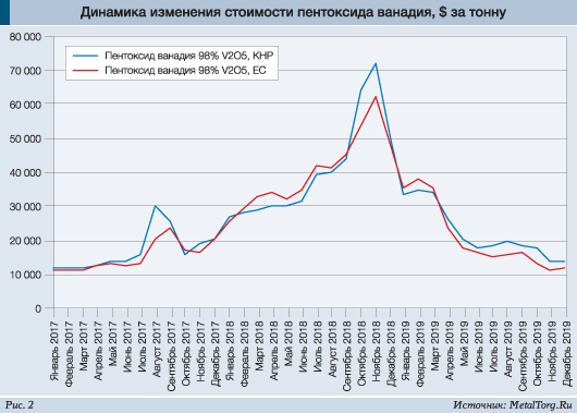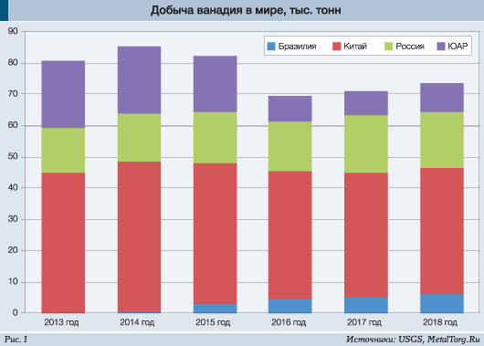 Закрытие шахты Evraz Highveld Mapochs из-за невозможности вернуть кредиторам $14 млн на фоне крайне низких цен привело к заметному сокращению мировой добычи ванадия (рис. 1) и к дальнейшему уходу «Евраза» из ЮАР в целом.
