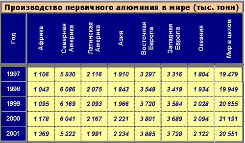 Еще в первом квартале 2001 крупнейшие мировые производители алюминия - американская компания Alcoa и канадская Alcan - заявили о снижении производства алюминия. В общей сложности производство на двух заводах компании Alcoa было сокращено на 150 тыс. тонн в год, а на одном из заводов Alcan - на 40 тыс.