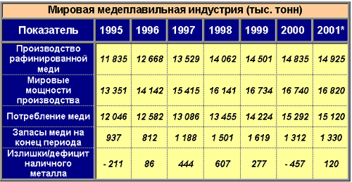С другой стороны расширение внутреннего рынка, связанное с ростом экономики в России, привело к значительному увеличению внутреннего потребления металла; так потребление меди в 2001 году выросло в России на 30%, что является лучшим показателем за последние 5 лет.