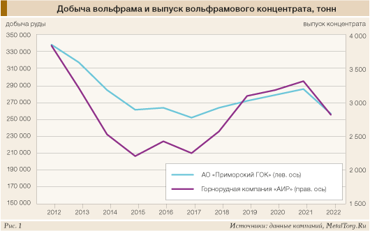В итоге к концу 1990-х годов все десять российских комбинатов, которые на тот момент добывали и перерабатывали вольфрам, приостановили или прекратили свою работу. Среди них крупнейший в мире Тырныаузский вольфрамо-молибденовый комбинат в... ... ...