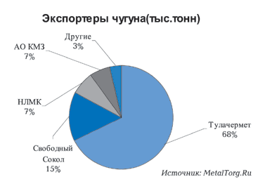 Из 600 тыс. тонн чугуна, ранее поставлявшегося на американский рынок, 60% приходилось на ОАО «Тулачермет». Предприятие по праву считается крупнейшим экспортером товарного чугуна в России. Кроме него на экспорт чугуна работают липецкий завод «Свободный сокол» и частично – Новолипецкий МК.