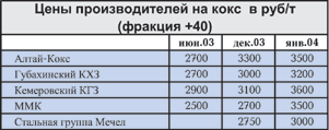 Постоянный рост цен в 2003 году на сталь ускорил процесс мировых переговоров по ценам на металлургическое сырье. Все сырьевики, ссылаясь на конъюнктуру рынка металлов, подняли свои цены на заоблачную высоту, да еще в рекордно короткие сроки.