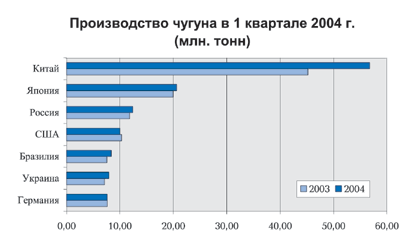 Кроме американского, весомым для экспорта является и азиатский рынок, который в 2004 году ориентировочно удвоит спрос на чугун.