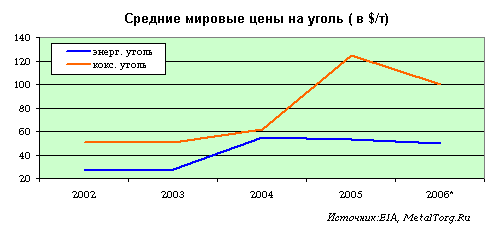 В 2006 году согласно австралийской аналитической организации AME, мировые цены на коксующий уголь снизятся. Спрос останется высоким, но увеличившиеся поставки из Австралии скорректируют цены.