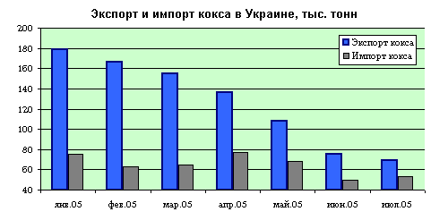 Украина, в лице Национальной акционерной компании (НАК) «Уголь Украины», даже инициировала проведение специального расследования в отношении импорта российских коксующихся углей на Украину. При этом основания для ограничений поставок угля из России просто отсутствовали: только за I полугодие 2005 г. экспорт в Украину снизился на 25% с 3,2 до 2,4 млн. тонн.