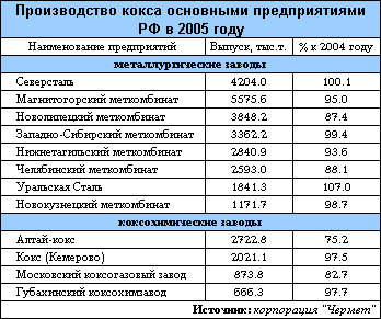 - сокращение в 2005 году и стагнация в 2006 году производств стали у большинства металлургических компаний – импортеров кокса,