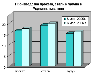За 6 месяцев 2006 года по сравнению с аналогичным периодом прошлого года металлургические предприятия Украины на 7,1% увеличили выпуск готового проката, а производство стали и чугуна выросло на 4,2% и 3,9% соответственно (рис.1).