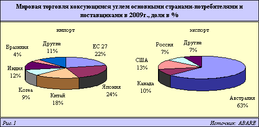 Следуя за спадом в металлургии в 2009 г., мировая торговля коксующимся углем, по оценочным данным ABARE (ввиду отсутствия официальной статистики), уменьшилась на 10%, до 215 млн т.