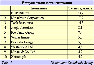 Кроме того, эти компании устанавливают базовые цены для долгосрочных контрактов с потребителями, в том числе и сталепроизводителями – около 66% мирового производства стали по прежнему зависит от поставок коксующегося (металлургического) угля, который, в свою очередь, составляет 30% расходов на выплавку тонны стали.