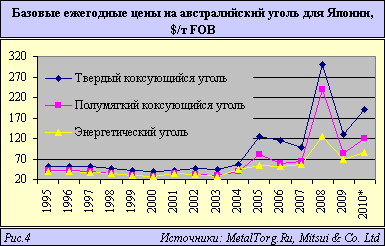 В частности, из общего объема поставок в 2009 г. угля крупнейшего австралийского поставщика BMA (BHP Billiton – Mitsubishi Alliance) около 48% было продано в Китай, который предпочитает покупать именно высококачественный коксующийся уголь.
