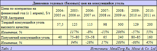 Кроме того, на январь–март 2011 г. также согласованы цены на полумягкий коксующийся уголь (PCI).