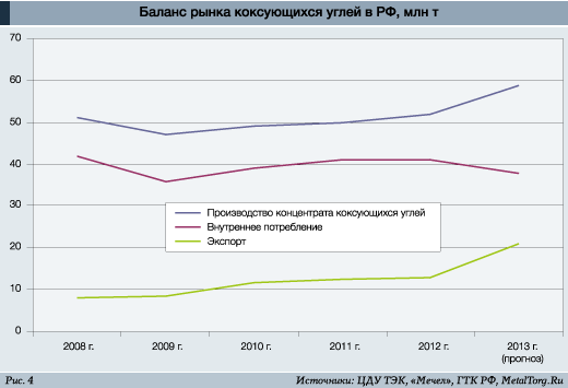 В течение многих лет российский рынок является избыточным как по объемам, так и по составу добываемых для металлургии углей (рис. 4).