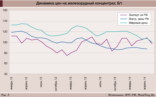 Стабильностью своей выручки Михайловский ГОК (и, как мы полагаем, все остальные) обязан топчущимся на месте российским ценам (рис. 3).