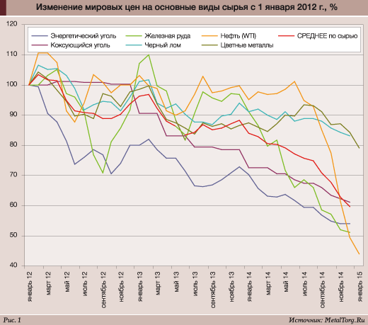 Сейчас, когда Россия с тревогой узнает об очередном снижении котировок цен на нефть, многие представители сырьевых компаний ведут себя довольно спокойно. По большей части они давным-давно «перегорели», поскольку цикл снижения котировок многих видов промышленного сырья в мире начался еще в 2011–2012 году (рис. 1).